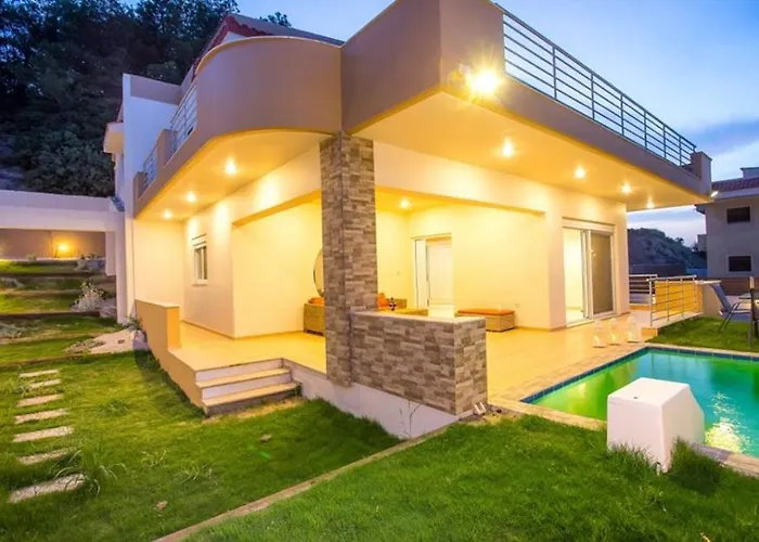 Mefomi Villa dysponuje tarasem z widokiem na górę, 10 min jazdy od lotniska Rodos. Willa oferuje gościom relaksujące doświadczenie z jacuzzi.
